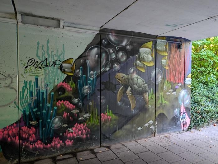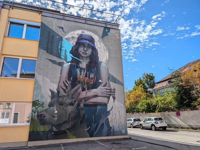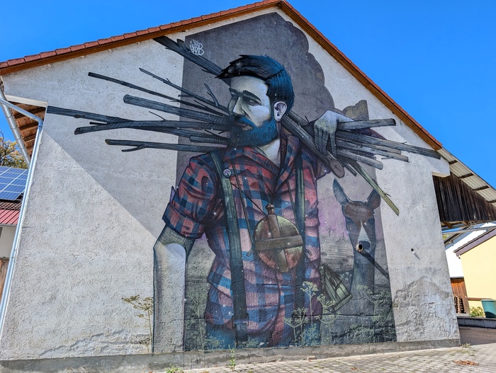 Вообще, в плане концентрации и качества работ, на мой взгляд, Эрдинг даже опережает Мюнхен. Тут получилась отличная прогулка на 1.5-2 часа, почти что "мурал трейл", и не Вудландом единым - также было замечено еще несколько внушительных работ (вообще, в свое время он здесь даже организовал стрит-арт фестиваль!)