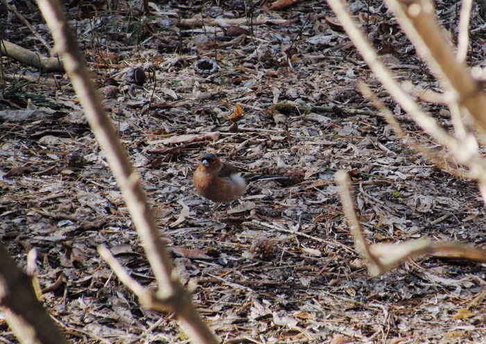 Я встретила синицу в парке. Она спрыгнула с ветки и спряталась от меня в кустах. Видимо у нее там дела какие-то свои, птичьи.
