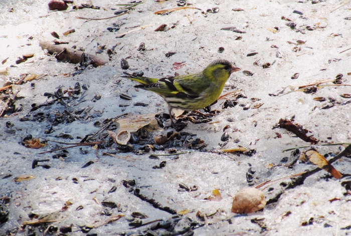 Синичка взяла арбузную семечку, интересно, почему их никто не сушит, хотя они тоже вкусные, пробовала сегодня. Вот тыквенные не берут, хотя я надеялась поползням будет интересно, но нет они по классике только кедровые берут.