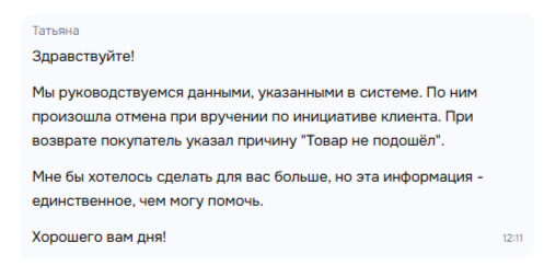 А теперь еще и непонятные манипуляции со статусом заказа, которые влияют на то, кто платит за логистику. И, конечно же, гениальные ответы службы поддержки.