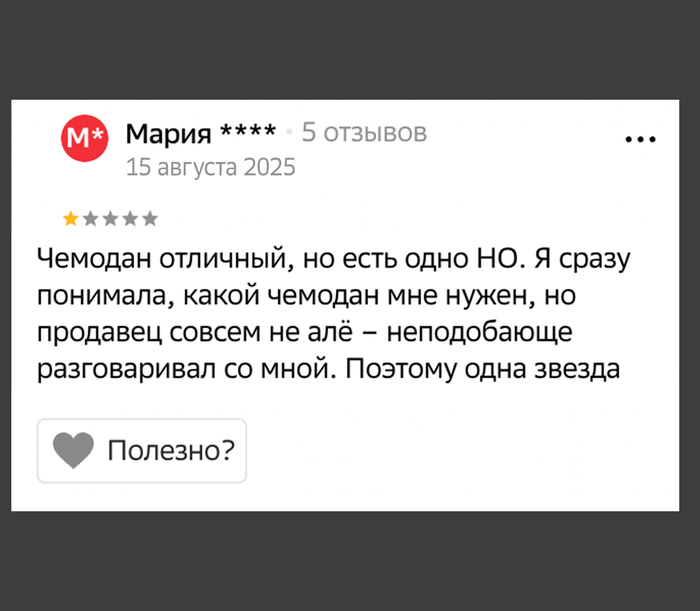 Так вот, в любимом мною деле есть одна хроническая проблема: совершенно отбитые покупатели-неадекваты. Которые мало того, что не разбираются в чемоданах, так ещё и совершенно не хотят слушать советов настоящих профи: меня и членов моей команды. От души советуешь, как выбрать хороший чемодан, но тебя в лучшем случае просто игнорят. В худшем – могут и послать. Неадекватных покупателей много и на маркетплейсах, и в реальной жизни: стабильно, буквально каждый день заходят в мой офлайн-магазин в Хабаровске.