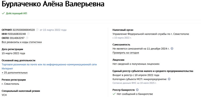 В открытом доступе только ФИО и реквизиты(для самозанятых только ФИО в карточке товара). Адреса для отправки претензии нет.