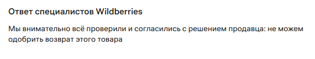 Рассмотрим ситуацию. Вы купили товар на WB, а он оказался с браком. В ПВЗ его не принимают и говорят, что надо оформить заявку на возврат. Вы это делаете, но продавец её просто отклоняет, а сам WB с ним соглашается.