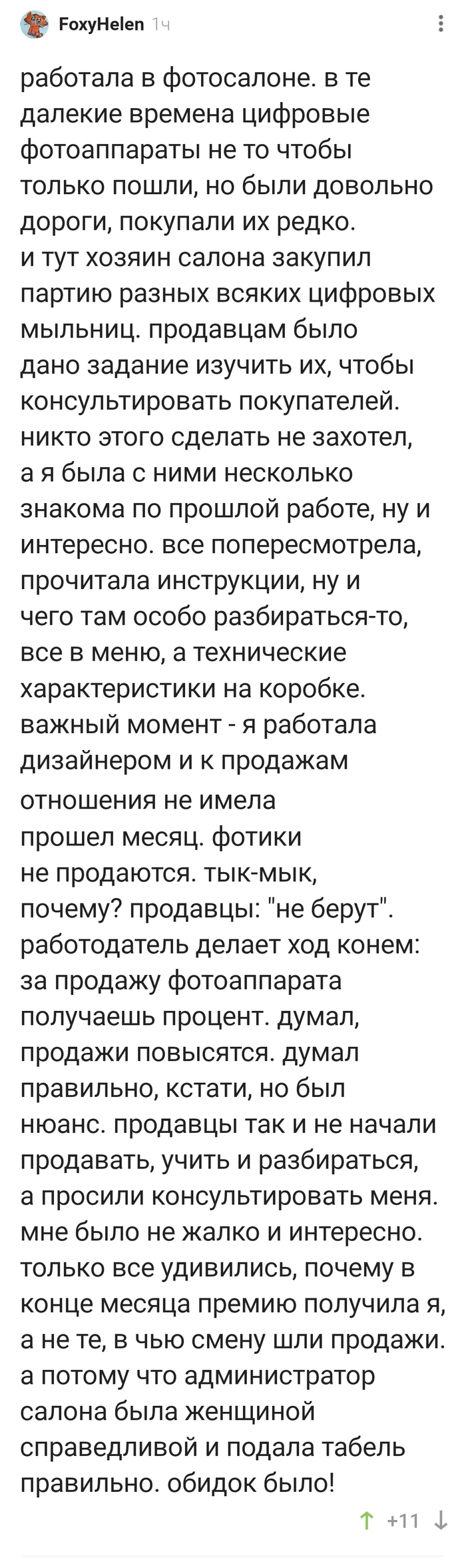 Пришлось включить начальника. И чутка повысить голос, осадив ребят и рассказав что так дела не делаются. Я тут не фотосессию пришел делать, а фотоаппарат продавать.