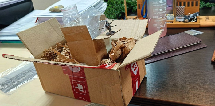 Заказчик высылает свои миниатюры в Санкт-Петербург. Лучше всего до нашего ПВЗ Яндекса, это дешевле и быстрее. Но можно и обычной почтой. За всю практику студии не затерялось ещё ни единой посылки, даже зарубежной (хотя в Ковид были дикие задержки - как вспомним, бррр...)