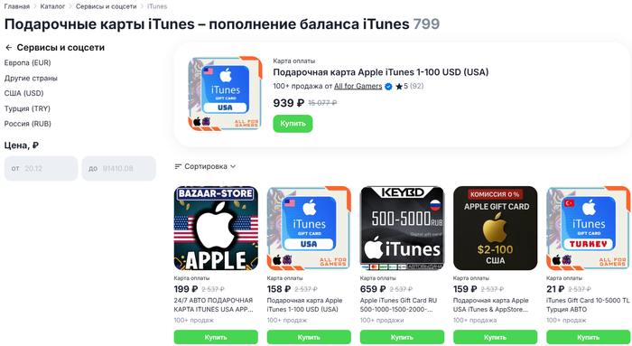 Все, что нужно — приобрести подарочную карту Apple, соответствующую региону вашего Apple ID. Карта пополнения для России не подойдет для Турции и наоборот — важно строгое совпадение. Такие карты можно найти на маркетплейсе ggsel.