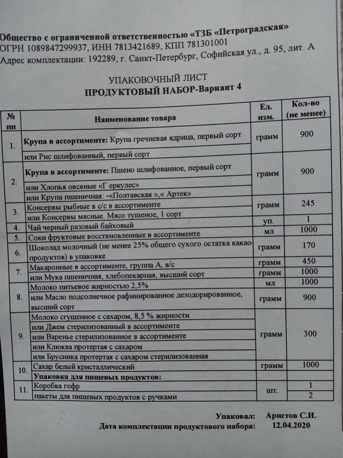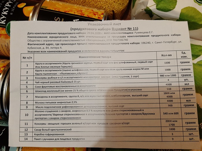 14-го апреля я уже ходил получать на него одну коробку вот с таким содержимым, список там также видно: