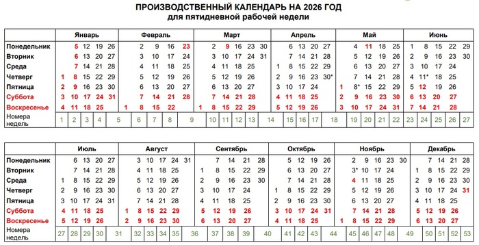 Был представлен производственный календарь на 2026 год. Если кто не видел, вот он: