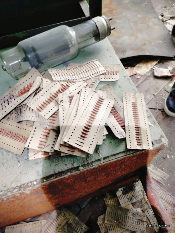 В некоторых помещениях были склады с различными радиодеталями: конденсаторами, радиолампами, транзисторами и резисторами.