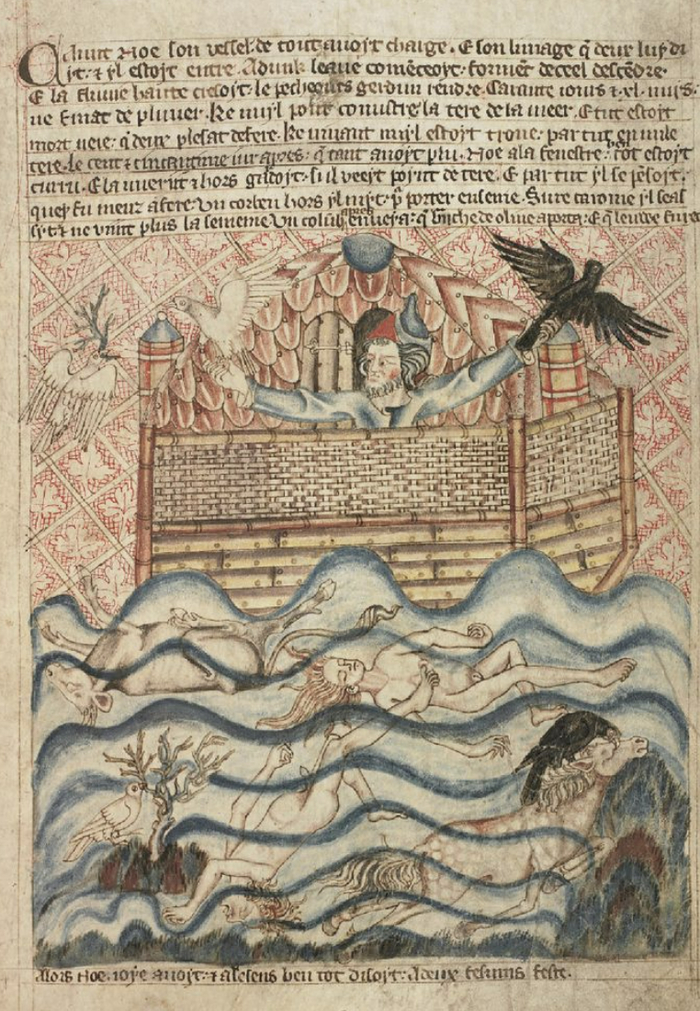 Этот вариант с выпусканием Ноем птиц с двух рук то же символичен.