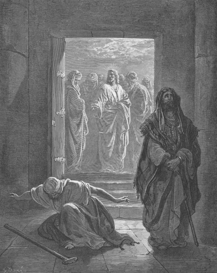 Сильная сцена из библейского сюжета.(щитов, защиты, защитника в библейских сюжетах много.)
