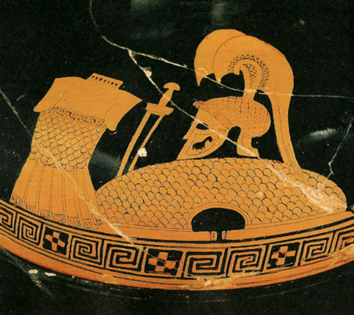 Здесь "оружие" (ὅπλῳ) символизирует не агрессию, а защиту — подобно тому, как щит оберегает воина.