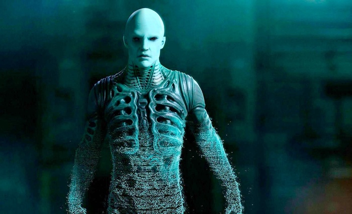 Сцена у водопада задаёт тон всему фильму: безмолвный великан с полупрозрачной кожей и глазами без белков выпивает странную жидкость, его тело разрушается и распадается на молекулы, из которых рождается жизнь.