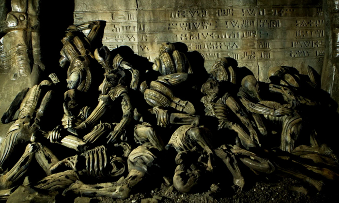 Экипаж "Прометея" прибывает на LV-223 в 2093 году. Это важно. Потому что углеродный анализ показывает, что Инженеры на LV-223 погибли примерно 2000 лет назад. То есть катастрофа на их базе произошла где-то в первом веке нашей эры. Значит, изображения у майя и гавайцев не могут относиться к тем же самым Инженерам. Вывод напрашивается сам: к человечеству приходили представители другой группы, которая пережила катастрофу или вовсе не имела к ней отношения.