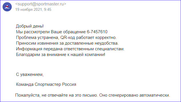 Думаю, ну ладно, может быть хоть признают свою ошибку, проанализируют что случилось и дадут вразумительный ответ на почту.