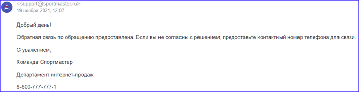 Сегодня получаю ответ на почту: