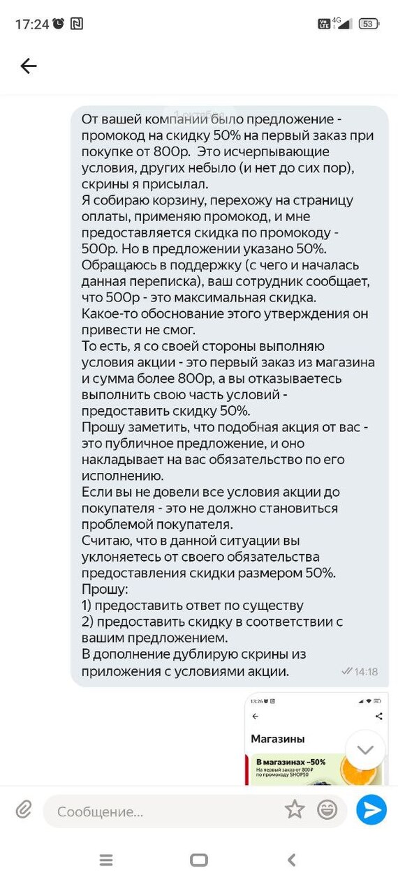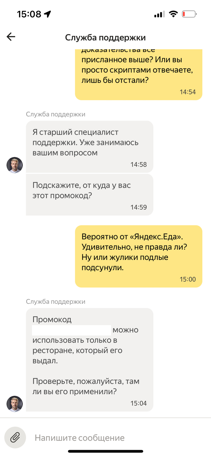 Очень надеюсь @Yandex.eda, что ваш голодный сотрудник купил нормальный хавчик на спизженный промокод.