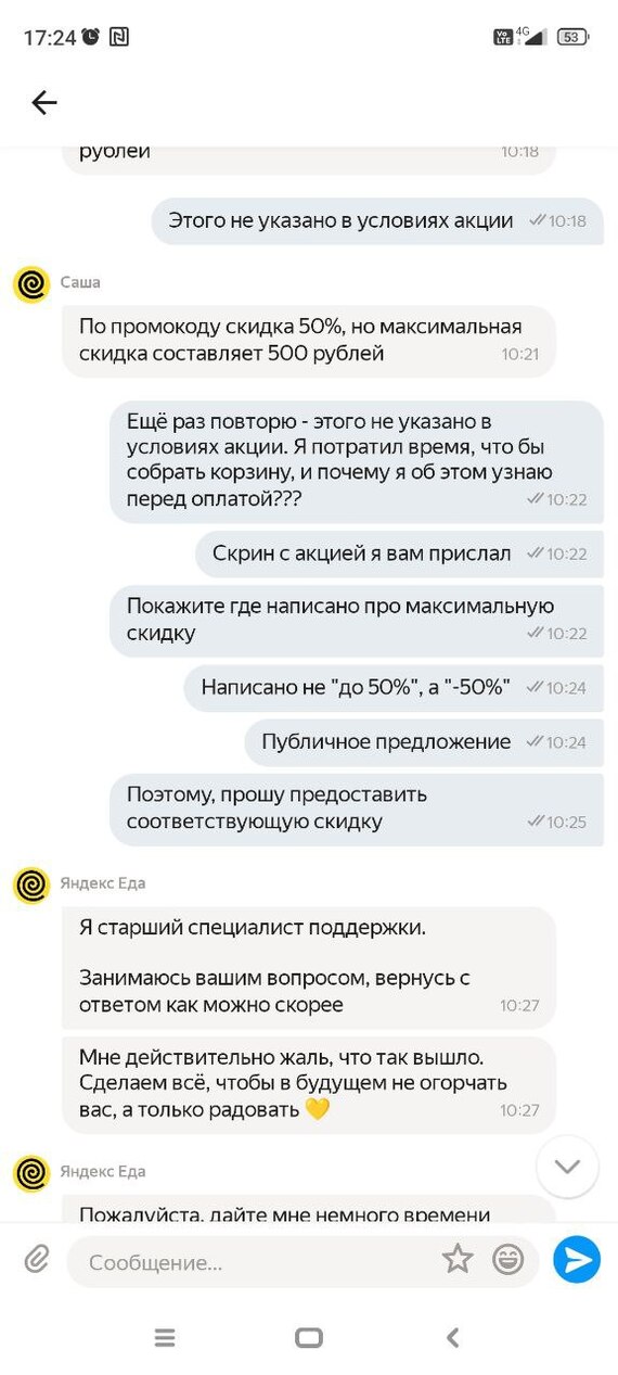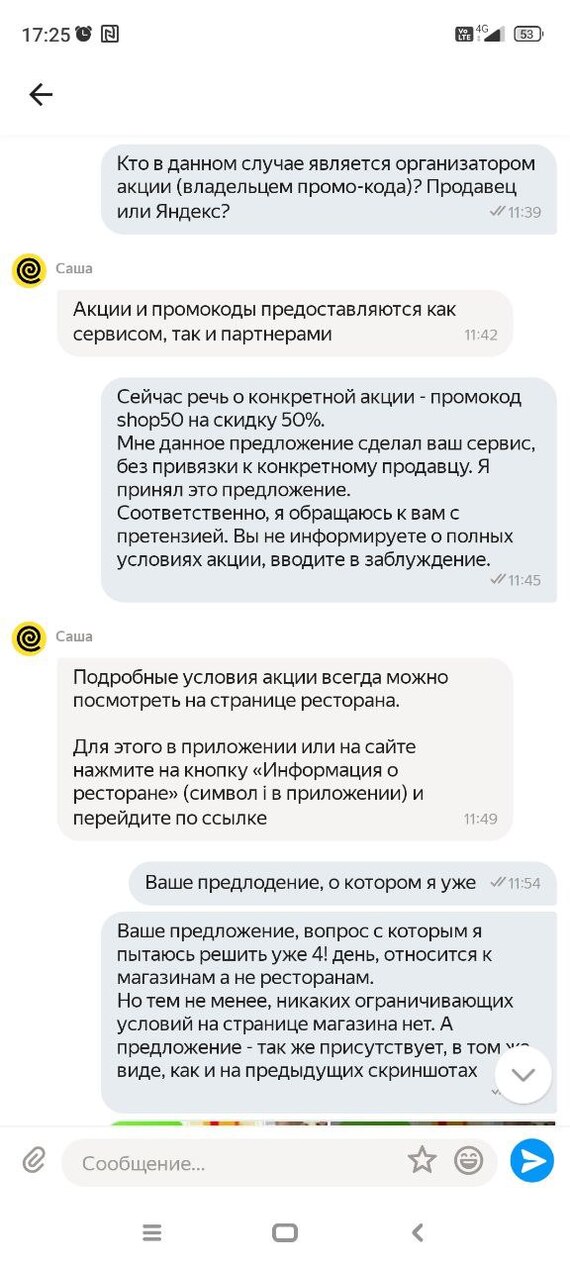 Очень хочется услышать ответ представителей компании яндекс.еда по поводу сложившейся ситуации.