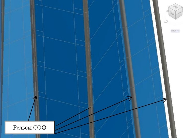 Сюда люльку на кране не подвесишь, поэтому для петербургского супертолла пришлось разрабатывать абсолютно новую СОФ. По сути, это настоящий рельсовый транспорт, но вертикальный. По краям фасада здания с 3 по 89 этаж устанавливаются 15 рельсовых путей. Каждый путь составлен из 87 рельсов длиной ровно в один этаж, то есть 4,2 м.