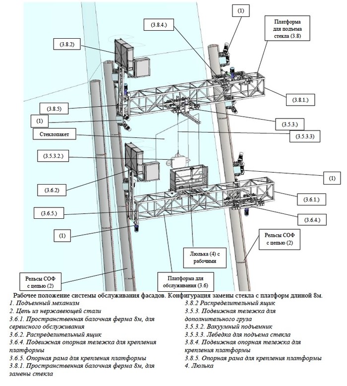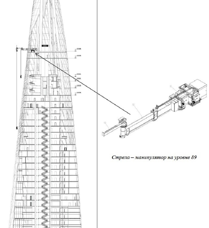 Манипулятор будет обслуживать недоступные для платформ участки фасада, в аварийных ситуациях станет средством эвакуации рабочих с платформ СОФ.