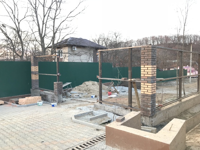 Делаем кирпичные столбы для забора из говна и палок.