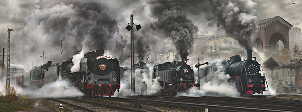 И вот получилась такая штука два с половиной на метр размером. Хорошая или плохая – не мне судить. Видимо, болезнь зашла далеко, и, чтобы эту болезнь спровоцировать и развить, пора приступать к новому типу паровоза, который совсем недавно мне удалось запечатлеть, как всегда, совершенно случайно. Это немецкий BR-52, работавший у нас и в странах Варшавского договора под индексом «ТЭ».
