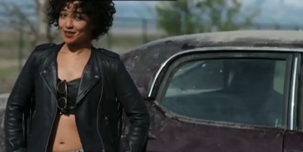 Незадолго до этого нам представляют Тюлип, которая убивает двух чуваков в машине, а позже еще и учит детей как сделать базуку из самогона, банок и нескольких металических солдатиков. И взрывает с ее помощью вертолет. После чего уезжает в неизвестном направлении, прихватив с собой таинственную карту. И вот знаете, Тюлип не то чтобы мисткаст... Просто если у вас перед глазами есть нарисованная блондинка, то брать на роль мулатку... Ну или я просто слишком строг... Кстати играет ее Рут Негга, засветившаяся до этого в нескольких сериалах в том числе "Отбросы" и "Агенты Щ.И.Т.".