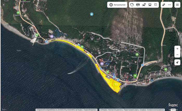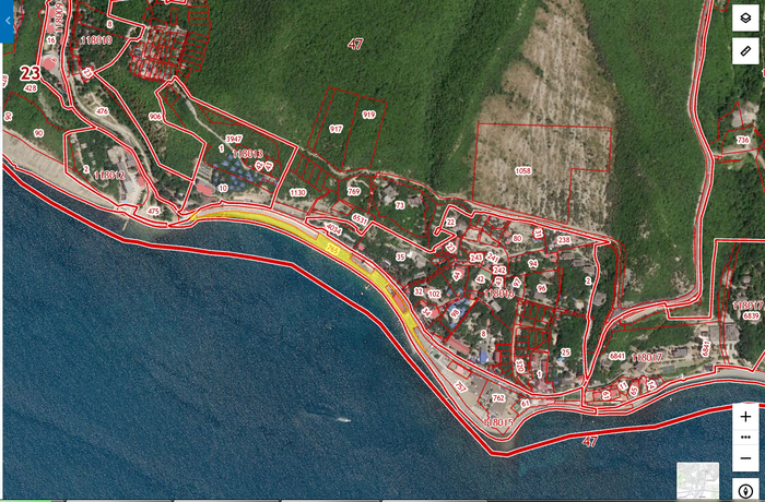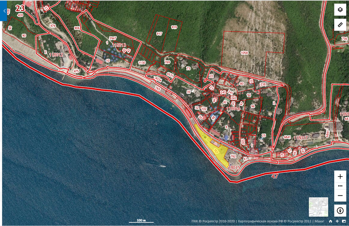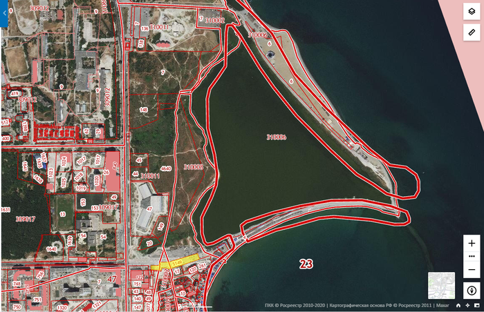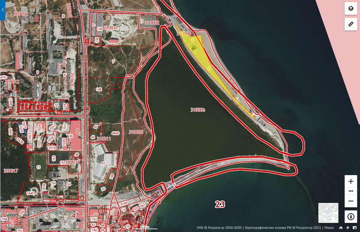 Участок 23:47:0000000:5149, расположенный рядом с косой, видимо, арендовался в качестве парковки. Но платить за неё ушлым предпринимателям, походу, зашквар. Три года назад администрация опять была вынуждена в судебном порядке требовать долг в 99 983 рубля за октябрь, ноябрь и декабрь 2017-ого.