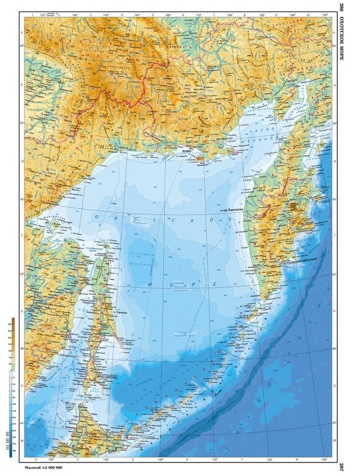 Карта Охотского моря. Скомпрометированный кабель связи шел от побережья Камчатки к северной оконечности Сахалина.