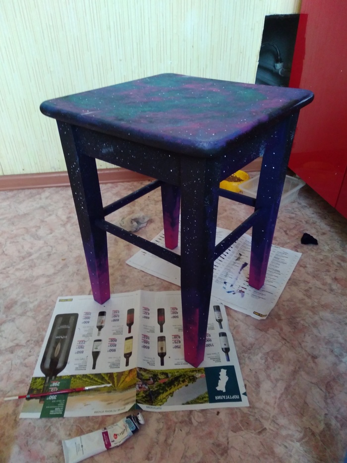 27 krutoffkaa Когда заканчиваются холсты, а вдохновение накрыло 7 лет назад Давно хотела преобразить старые табуретки... Вот результат Таким он был до Показать полностью 3 [моё] Просто космос Декоративное искусство Табуретка Длиннопост