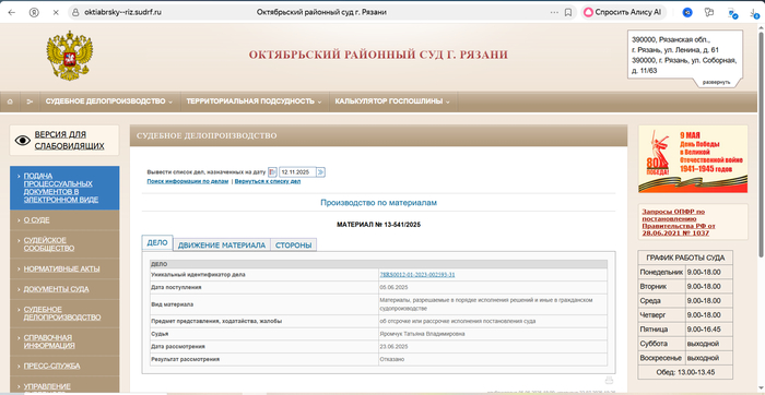 Однако мы дошли до 2 кассационного суда в Москве и отменили такую отсрочку. Теперь, судьи Октябрьского суда вряди ли посмеют повторить свой финт ушами.