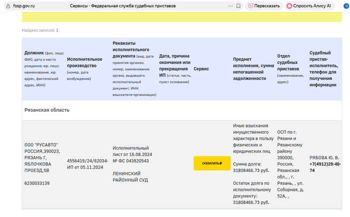 Также всерьез беремся да рязанских приставов, которые почему-то ГОД просто не исполняют судебное решение, несмотря на возбужденное исполнительное производство: