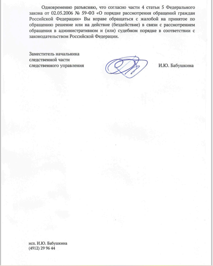 Мы написали жалобу в УМВД по Рязанской области и ожидаемо получили бредовую отписку