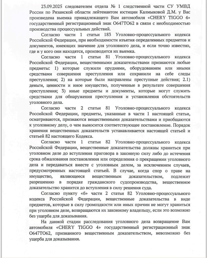 Второе - новое уголовное дело и серьезные связи автосалона с земляками из УМВД по Рязанской области.