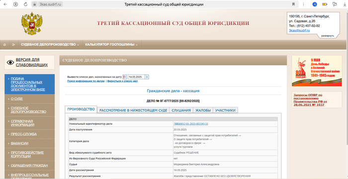 В мае 2025 года закончились кассации. Их было 2 штуки, я напомню вам в видео почему именно две.