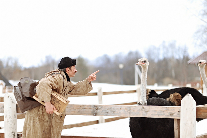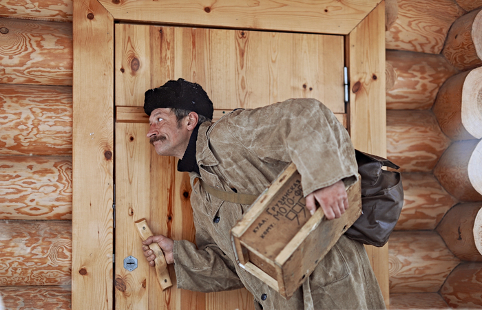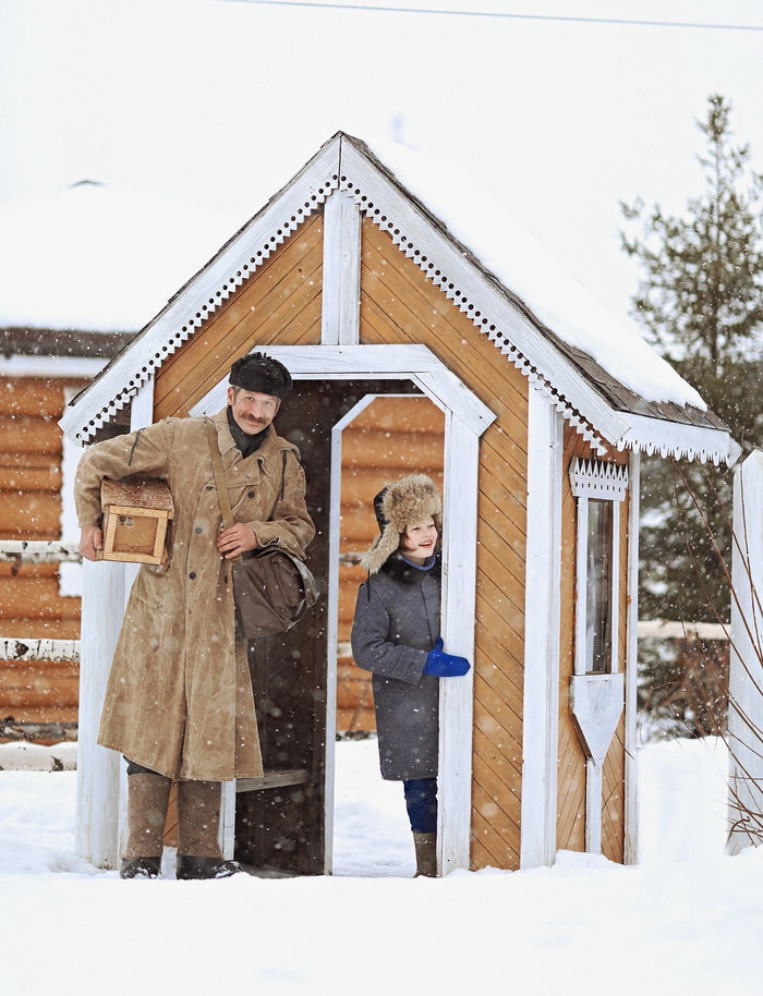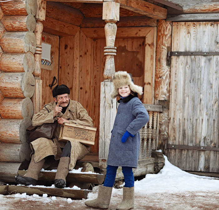 На следующий день прибыл почтальон Печкин, подозрительно кутаясь в свой необъятный тулуп.