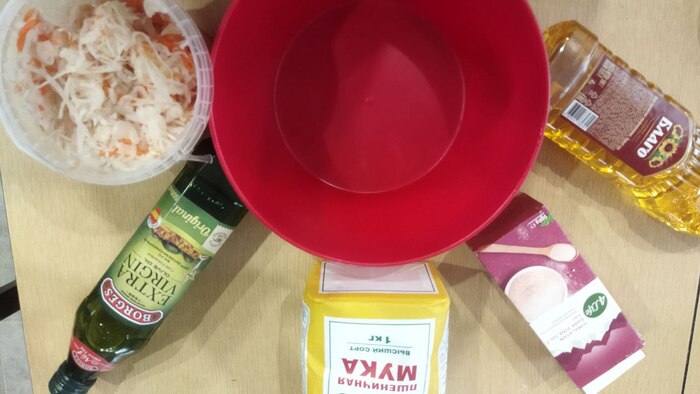 В начинке только отжатая от сока квашенной капуста, без обжарки и прочего.