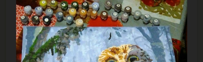 Когда давно купила картину по номерам (одно время увлекалась). Раскрасила 2 глаза и забросила (2 переезда, ремонт. Не было времени ). И вот наконец нашлось время, да краски пересохли. Опять я отложила картину.