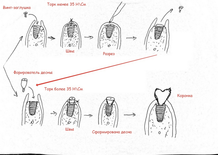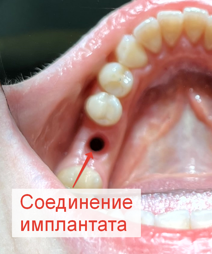 Сперва тебе его открутят. В идеале, в десне должна сформировать аккуратная дырочка, где виднеется соединение импланта.
