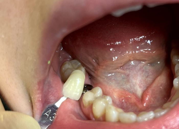 После того, как коронка припасована мы оцениваем цвет, форму, десну. Пациенту ничего не должно мешать. Непривычно может быть, но не дискомфортно.
