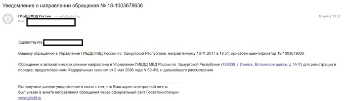 Пришлось обходить по грязи. Пришел домой и тут-же написал письмо на оф.сайте ГИБДД. Получил номер обращения: