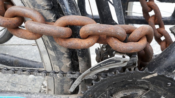 В социальных сетях Челябинска обсуждают автомобиль с необычной противоугонной системой. Его владелец обмотал цепями двери машины. Информацию об этом сообщают местные СМИ.