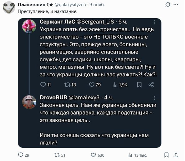 7036 morevnaM 1 день назад Преступление и наказание Политика X (Twitter) Россия и Украина Украинцы Скриншот Комментарии Зашакалено Электричество 538 304 106 59 25 4 4 4 2 Ещё 4