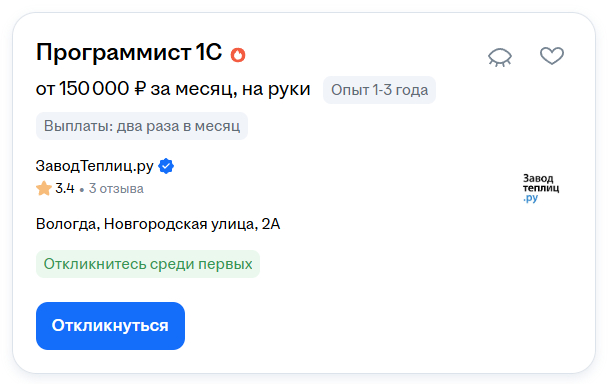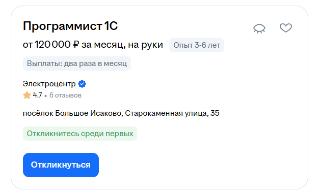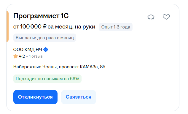 Предыдущий уровень ЗП: ~100 000 рублей в месяц