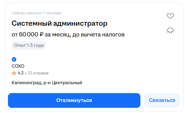 И так после всех предыдущих головокружительных событий наступил этап "как можно жить на 30к не понимаю", т.е. срочный курс на "а что у нас здесь с вакансиями и что почем".