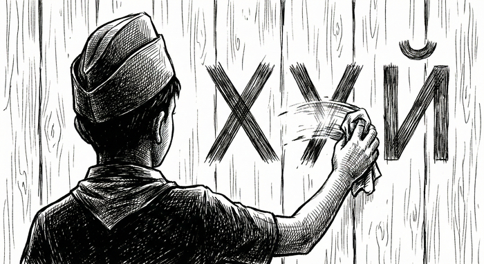 Сначала был просто пионер, стирающий слово с забора