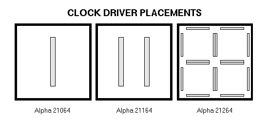 При разработке EV6, учитывая большое число и сложность организации взаимодействия функциональных устройств, была полностью переработана схема расположения генераторов тактовых частот. Более равномерное распространение тактового сигнала позволило ядру работать на частотах, равных частотам куда более простого ядра EV56, при использовании того же техпроцесса. В общем, потребляемая частотными генераторами мощность составляла для EV6 около 32% от общего потребления ядра; для сравнения, у EV56 этот показатель был около 25%, у EV5 -- около 37%, у EV4 -- около 40%.