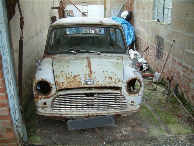 Austin Se7en 1959 года выпуска, которая много лет ржавела в одном из гаражей в Англии. Когда ее в 2011 году за 11 000 фунтов купил редактор автомобильного сайта, то его сочли просто сумасшедшим. Но оказалось, что это одна из первых Миим в мире (сохранилось только 3 машины, которые были выпущены раньше) и старейшая из нереставрированных.