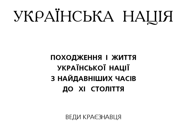 В книге представлено происхождение и жизнь украинской нации от ее образования 40 тысяч лет назад и до XI века н. е.