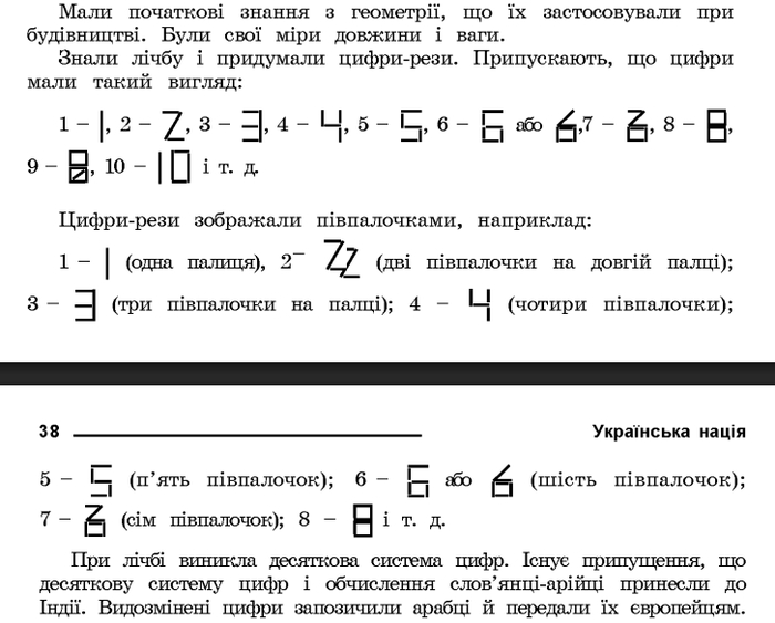 При счете возникла десятичная система цифр. !Существует предположение, что десятичную систему цифр и вычисление славяне-арийцы принесли в Индию. Измененные цифры переняли арабы и передали их европейцам.